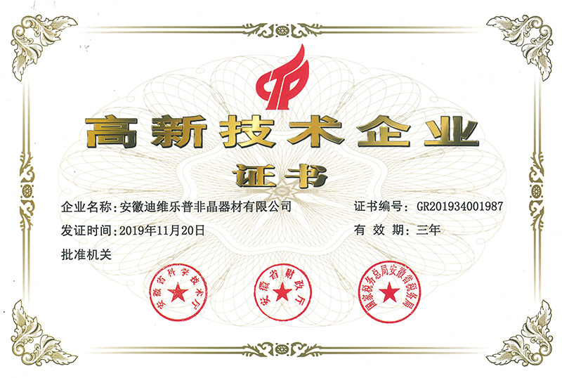 • 高新技術企業證書
